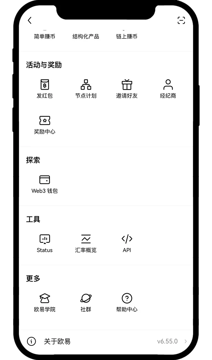 点击 App 首页左上角图标 -> 底部【关于欧易】 -> 【检查更新】。